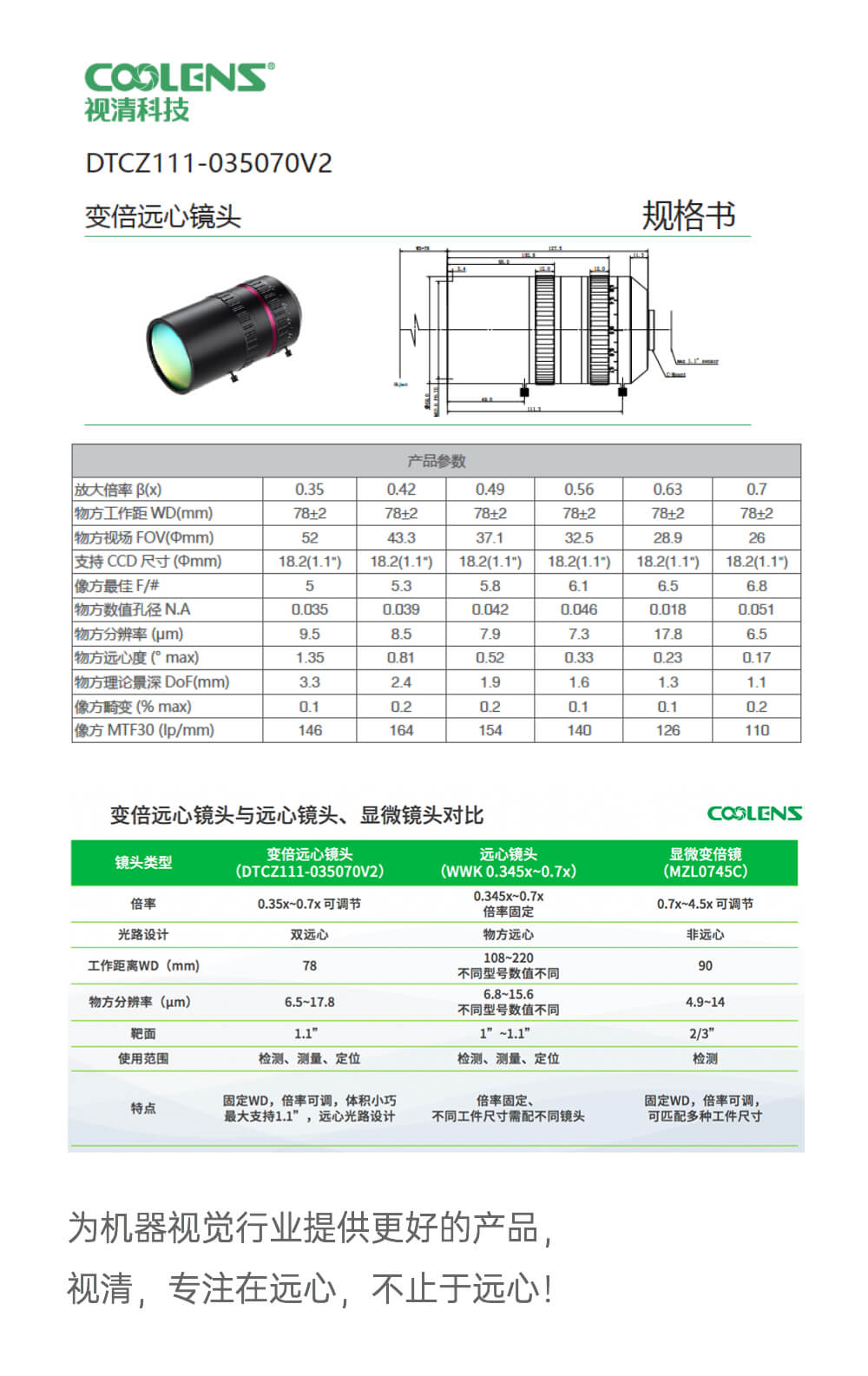 高分辨率变倍远心镜头