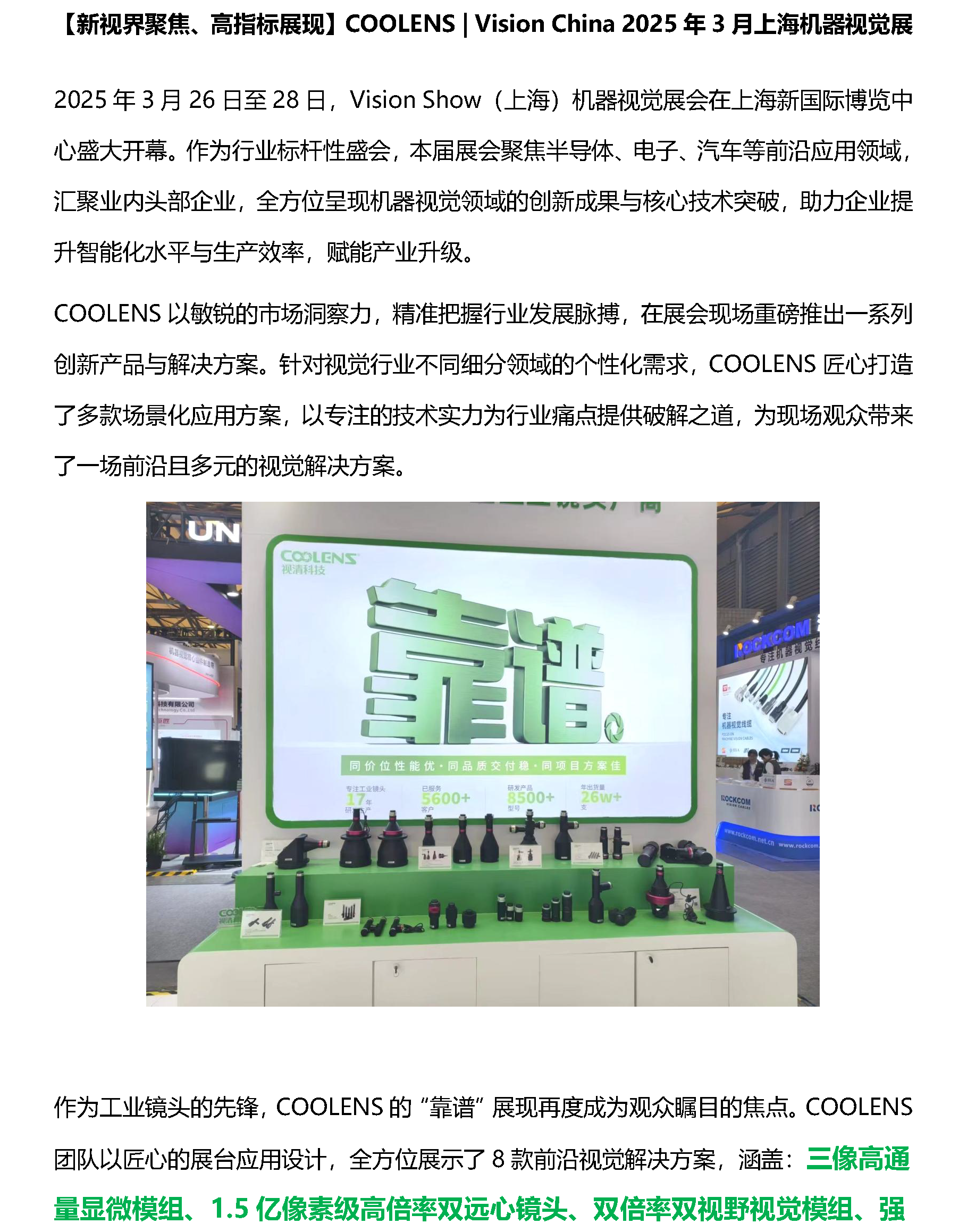 【新视界聚焦、高指标展现】COOLENS | Vision China 2025年3月上海机器视觉展